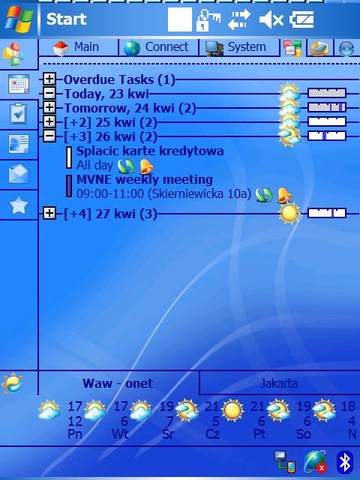 The only real advantage of WM5 is the new memory model, which in theory should improve battery life. I say “in theory” because at first the battery drained alarmingly fast. Update: after a few charge cycles it stabilized and now I get 2–3 days with fairly heavy use (daily Bluetooth sync, several address checks and evening reading).