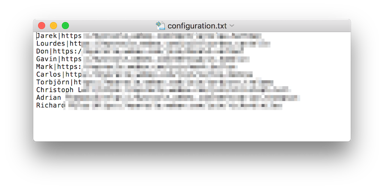 In the file, set your URLs in format <Name>`|`<URL>, for example Jarek|https://webex.com/joint/jarek.hartman: